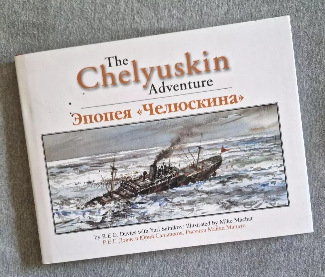 “Great book on Arctic Exploration and aviation history. I have read quite a bit about the Chelyuskin over the years and this is the first time I have read the entire story. Very good. I am learning Russian (slowly, just for the fun of it), and this is a lesson in Russian history about an attempted Arctic ship voyage that ran into trouble. An airplane was on board the ship to use for advance scouting of the ice they would encounter, and aircraft played a large role in the rescue as well. The book is well-illustrated, and I like the side-by-side English and Russian (Cyrillic) texts. These are getting scarce (out of print last time I checked), so if you’re interested, don’t wait too long; you might also check local used book stores as well.”